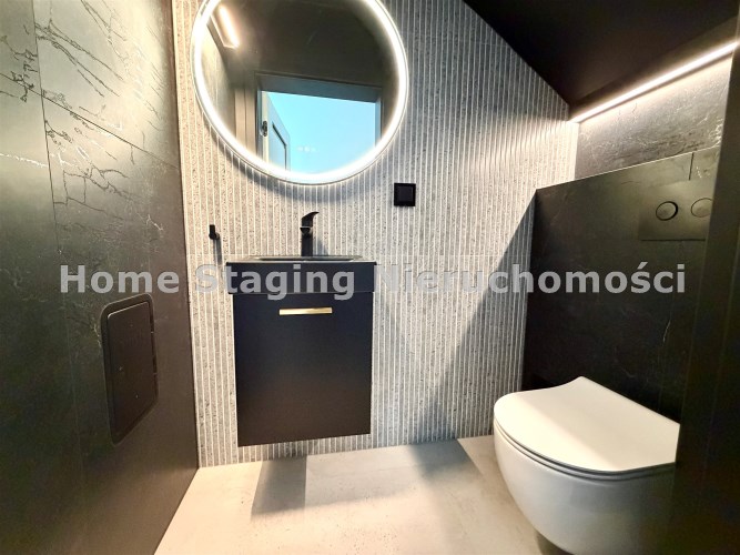 Na sprzedaż dom w zabudowie bliźniaczej. Całkowita powierzchnia budynku wynosi 156,24 m2, z czego powierzchnia użytkowa to 115,85 m2, w tym 17,03 m2 garażu. Działka, na której leży budynek, ma powierzchnię 318,25 m2.