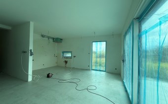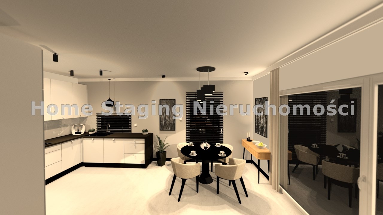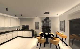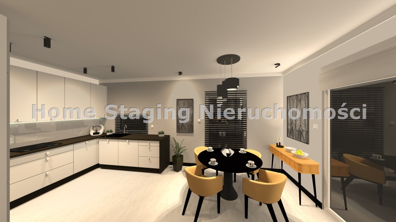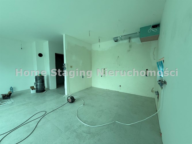 salon połączony z aneksem kuchennym, wyjście na duży taras, wc , z holu przejście do garażu.