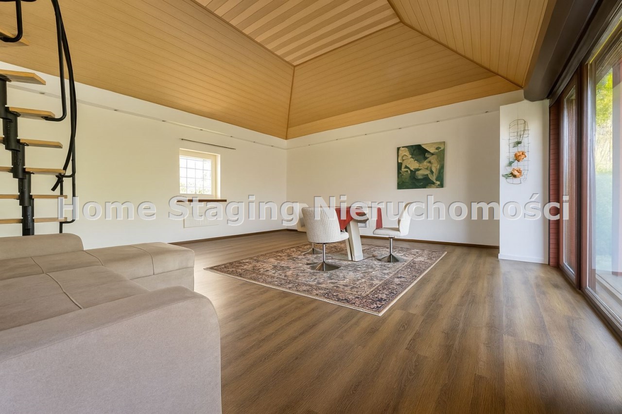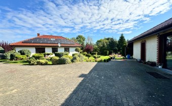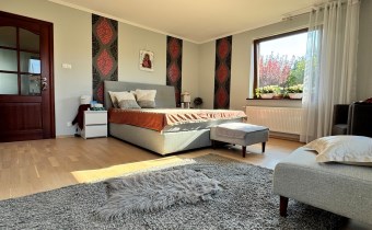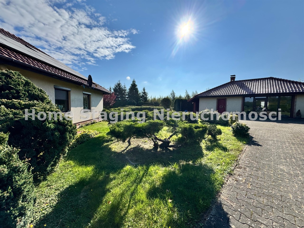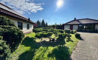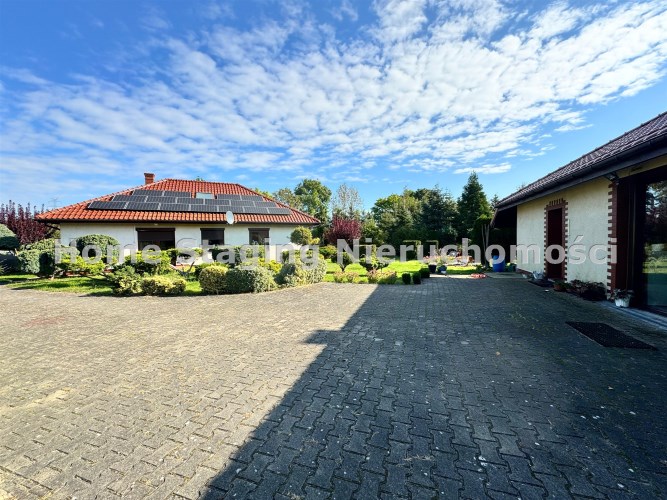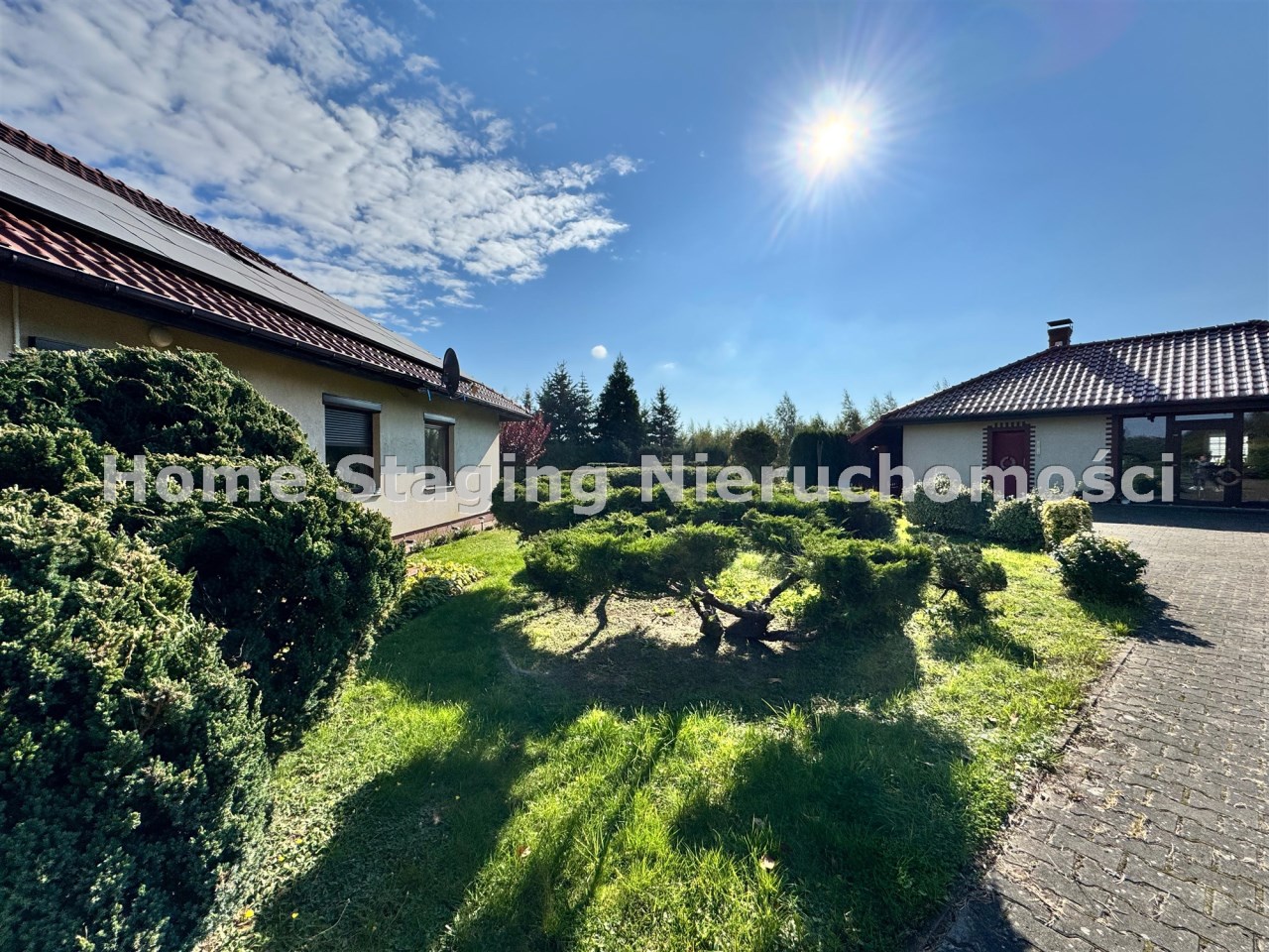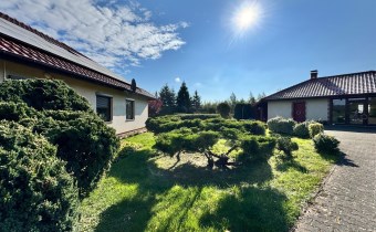 Budynek dodatkowy na działce (garażowo-gospodarczy) budowany jako garaż, obecnie zaadoptowany na mieszkalny (można przywrócić pierwotną funkcję zdejmując okna bo brama elektryczna jest zamontowana). Znajdziemy tu także przestrzeń na antresoli jako cześć sypialna. Dodatkowo jest łazienka i kuchnia oraz piwnica w której jest umieszczony cały system ogrzewania i filtry.