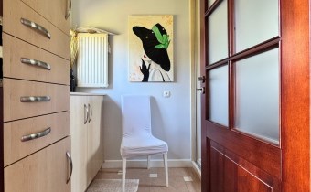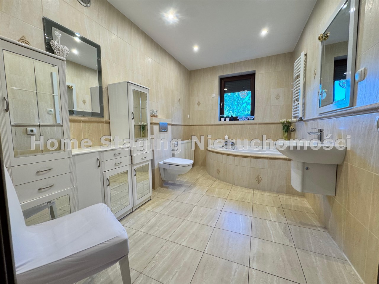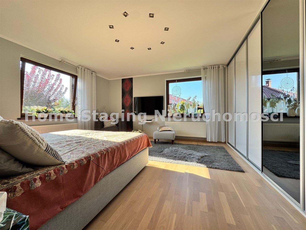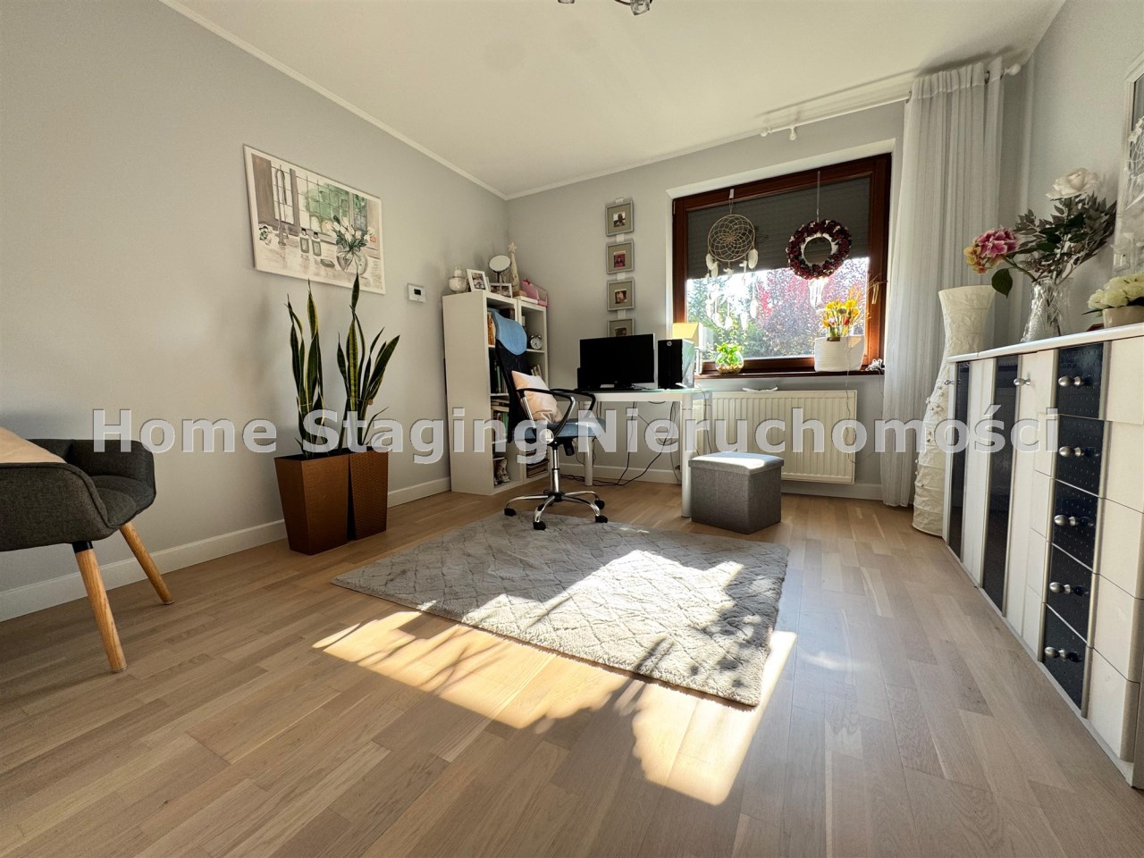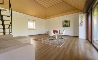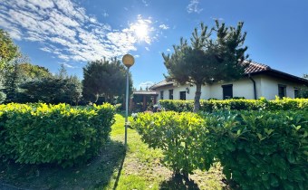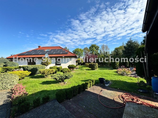 Budynek dodatkowy na działce (garażowo-gospodarczy) budowany jako garaż, obecnie zaadoptowany na mieszkalny (można przywrócić pierwotną funkcję zdejmując okna bo brama elektryczna jest zamontowana). Znajdziemy tu także przestrzeń na antresoli jako cześć sypialna. Dodatkowo jest łazienka i kuchnia oraz piwnica w której jest umieszczony cały system ogrzewania i filtry.