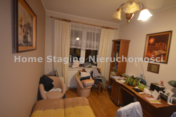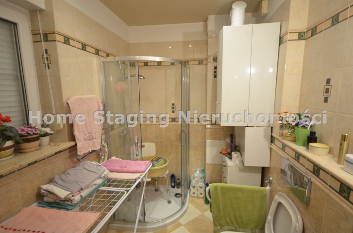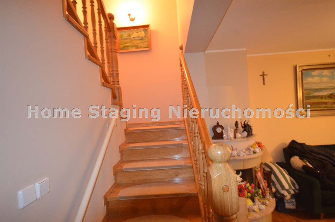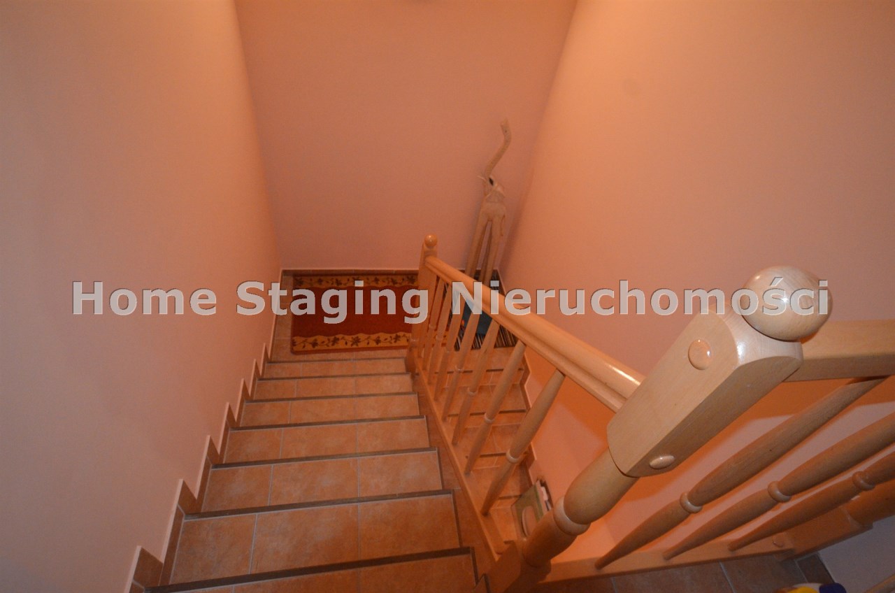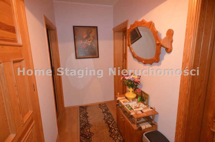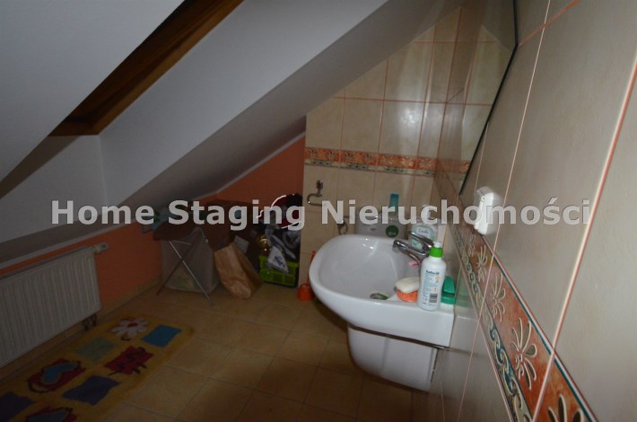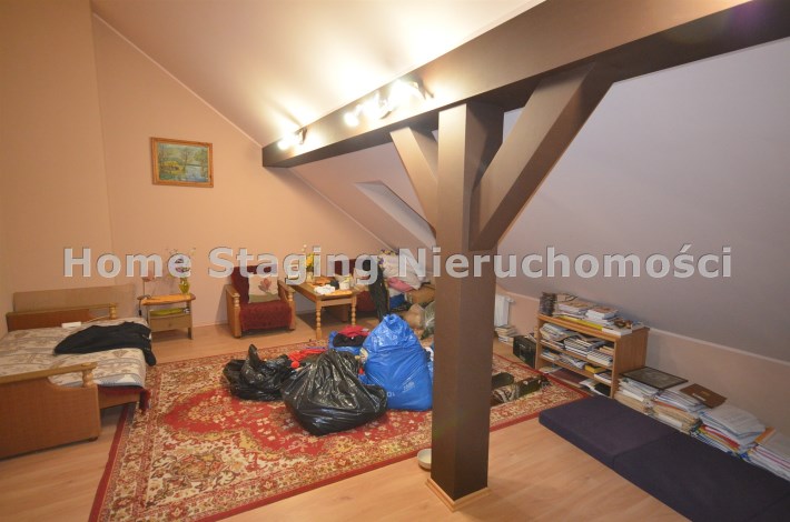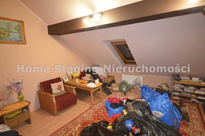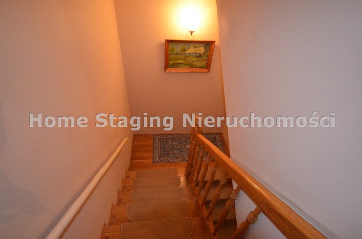 Na pierwszym piętrze znajdują się 3 pokoje, łazienka z wc i wanną. Na poddasze prowadzą również drewniane schody i jest tam zagospodarowany pokój, łazienka z wc oraz duży otwarty pokój z widokiem na ogród. Nieruchomość w pełni umeblowana w standardzie powyżej średniej, po remoncie 3 lata temu