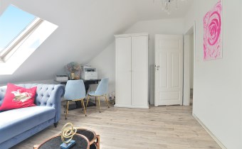 • Przestronny, jasny salon z wyjściem na zadaszony taras od strony południowej