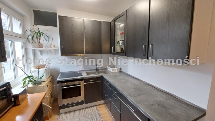 Dom położony przy jednej ze spokojniejszych ulic w Świnoujściu przy ul Grottgera. Bliźniak z cegły w dobrym stanie technicznym. działka ma kształt nieregularny, ogrodzona z przesuwną bramą. Na działce stoi garaż jednostanowiskowy. Na parterze jest przestronny przedpokój, piękny salon z kominkiem i z wyjściem na duży taras. Salon jadalnia i kuchnia tworzą jedną całość, tylko umeblowanie określa funkcję tych pomieszczeń. Na tym poziomie jest jeszcze sypialnia i dość duża łazienka. Piękne drewniane schody prowadzą na I piętro, gdzie są 3 sypialnie, niewielka kuchnia, łazienka i dodatkowe WC. Jest jeszcze poddasze, gdzie może być dodatkowy pokój. Pod całym budynkiem są duże, suche piwnice ( 4) z wyjściem do ogrodu. Ogrzewanie i ciepła woda z piecyka gazowego, urokliwy kominek daje ciepło w salonie i jadalni. Właściciele wymienili instalacje wodne i elektryczne. Niskie koszty utrzymania. Okolica spokojna. Oferta na wyłączność. Zapraszam