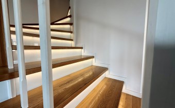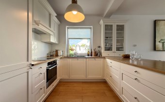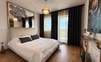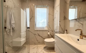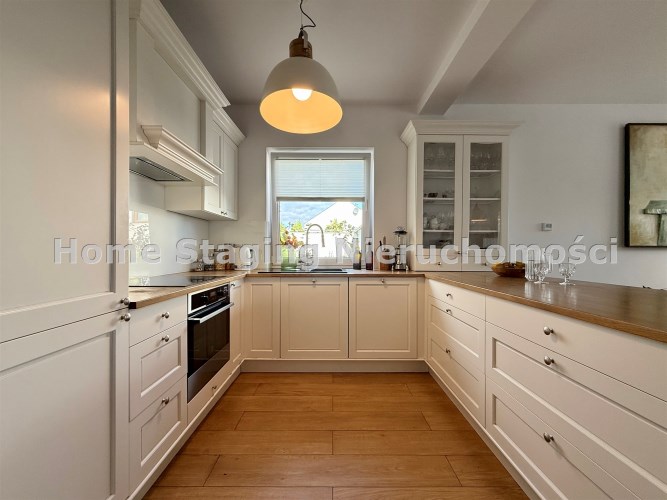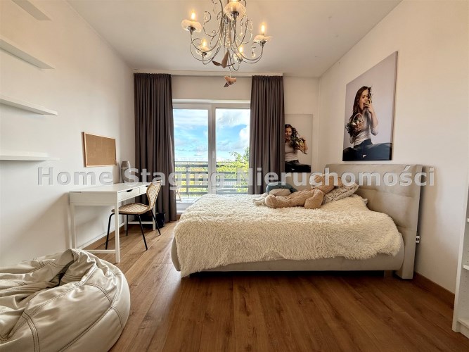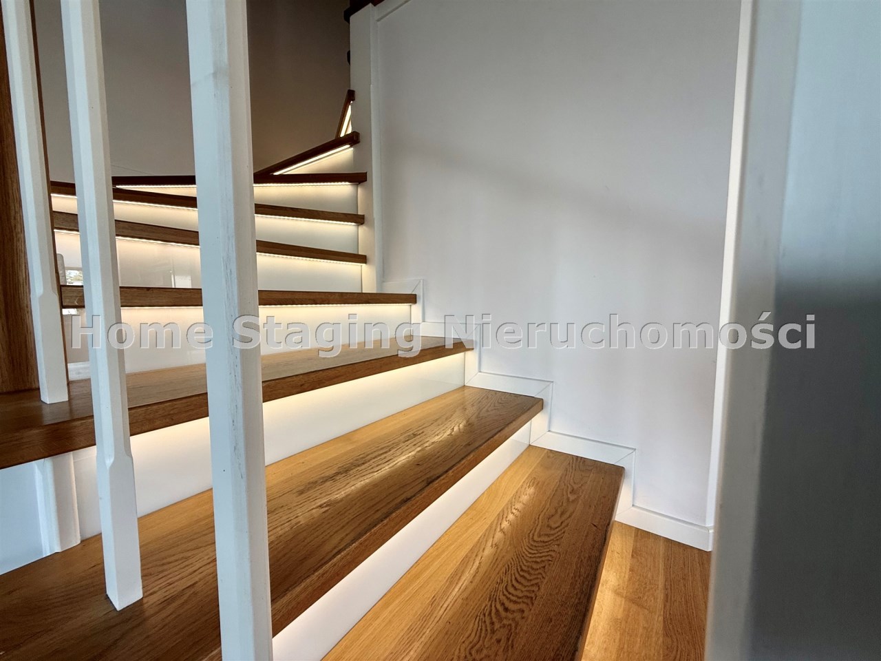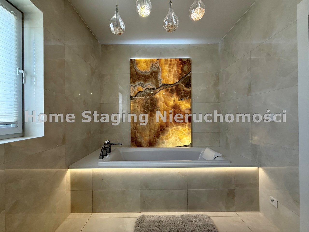 Wnętrze domu obejmuje 5 pokoi, w tym 4 sypialnie z czego jedna została zagospodarowana na garderobę, co zapewnia wygodę nawet dla dużej rodziny. Budynek z garażem w bryle i bezpośrednim wejściem do części mieszkalnej.
