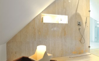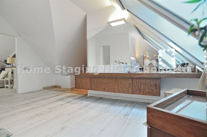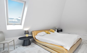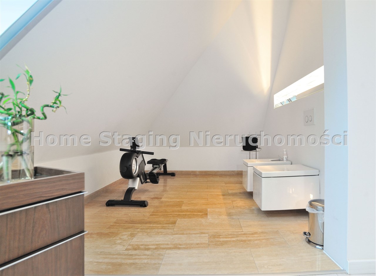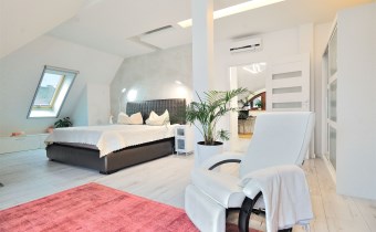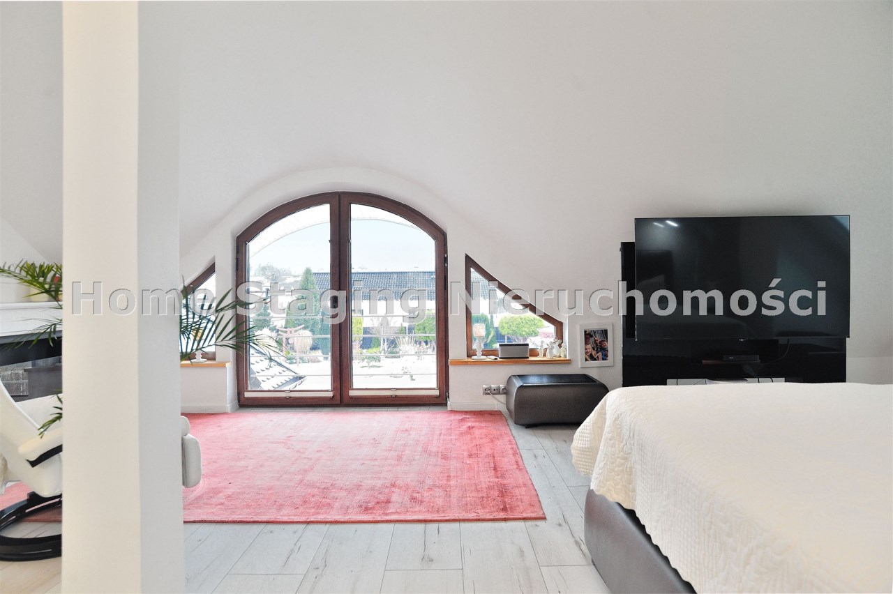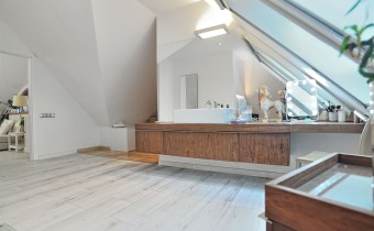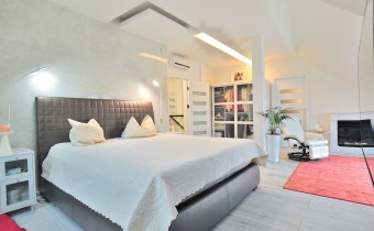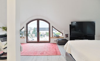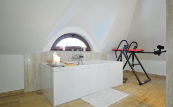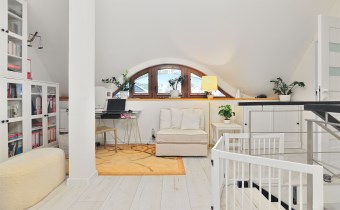 Pietro: sypialnia z oknem na ogród i garderobą, pokoj, zagospodarowany hol w z biblioteką  i drugim biurem, oraz pokój kąpielowy.