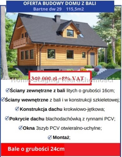 Do zakupu dom z bali drewnianych do wybudowania na własnej działce lub działce do nabycia.