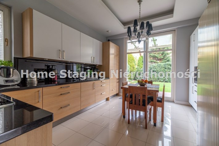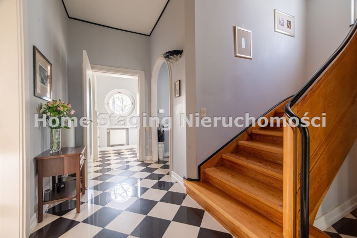Ta poniemiecka willa w stylu Art Deco o powierzchni użytkowej 297 m² (powierzchnia całkowita 447 m²) z garażem o powierzchni 35 m² została kompleksowo odrestaurowana z wykorzystaniem materiałów najwyższej jakości, z zachowaniem oryginalnego charakteru i ponadczasowej elegancji.