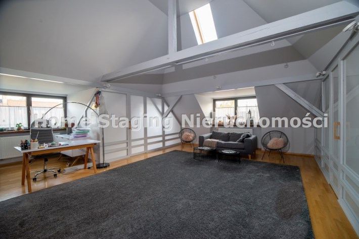 • Otwarta, klimatyczna przestrzeń zaadaptowana na część mieszkalną,