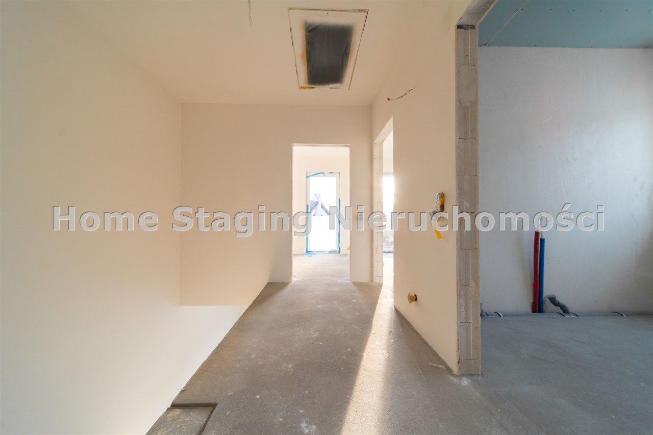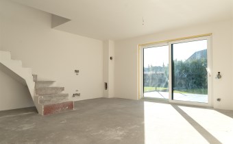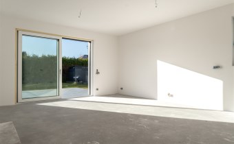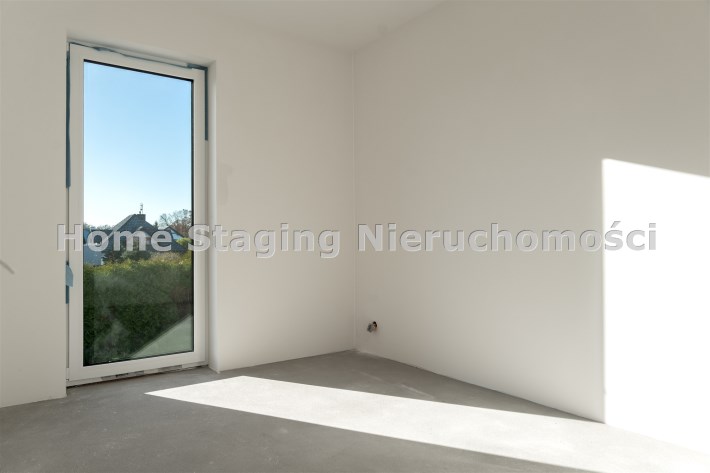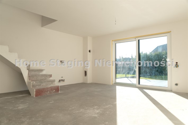 Parter : salon z aneksem kuchennym oraz wyjściem na taras i ogród od strony południowej, pokój idealny na biuro lub pokój gościnny, wiatrołap, łazienka oraz pomieszczenie gospodarcze.