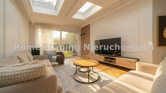 - przestronny salon ze świetlikiem dzięki czemu przestrzeń jest pięknie doświetlona