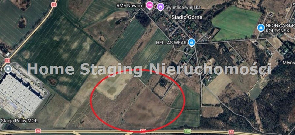 Działki rolne o powierzchniach 3,26ha i 1,8241ha takiej samej cenie za 1m2 w Siadle Górnym w sąsiedztwie węzła A6 i zachodniej obwodnicy Szczecina.