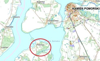 Działka budowlana o powierzchni 9401m2 przy wodzie w Połchowie gm. Kamień Pomorski.