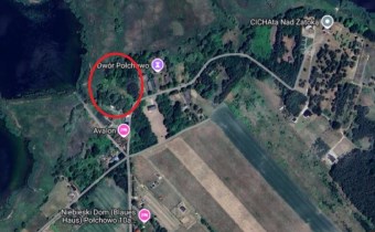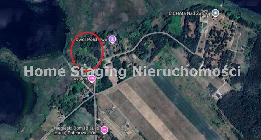 W sąsiedztwie pensjonat, zabudowania starsze wsi Połchowo oraz nowo powstające domy i budynki rekreacyjne.