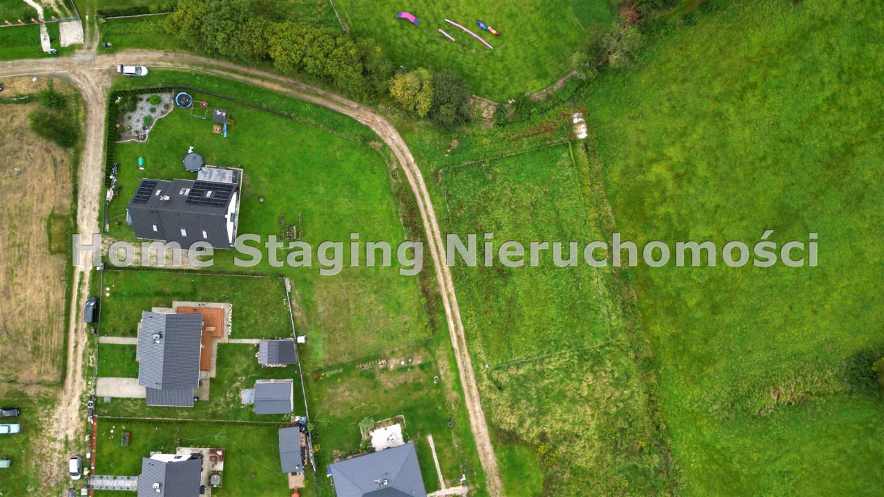 1029m2 położona jest w pieknym miejscu, przy drodze oddalonej od głównej ulicy. Działka graniczy z terenem ochrony Natura 2000, dzięki czemu mamy pewność, że nic nie zasłoni widoku na łąki. W najbliższym otoczeniu kompleks innych działek, tworzących mini osiedle domków jednorodzinnych.