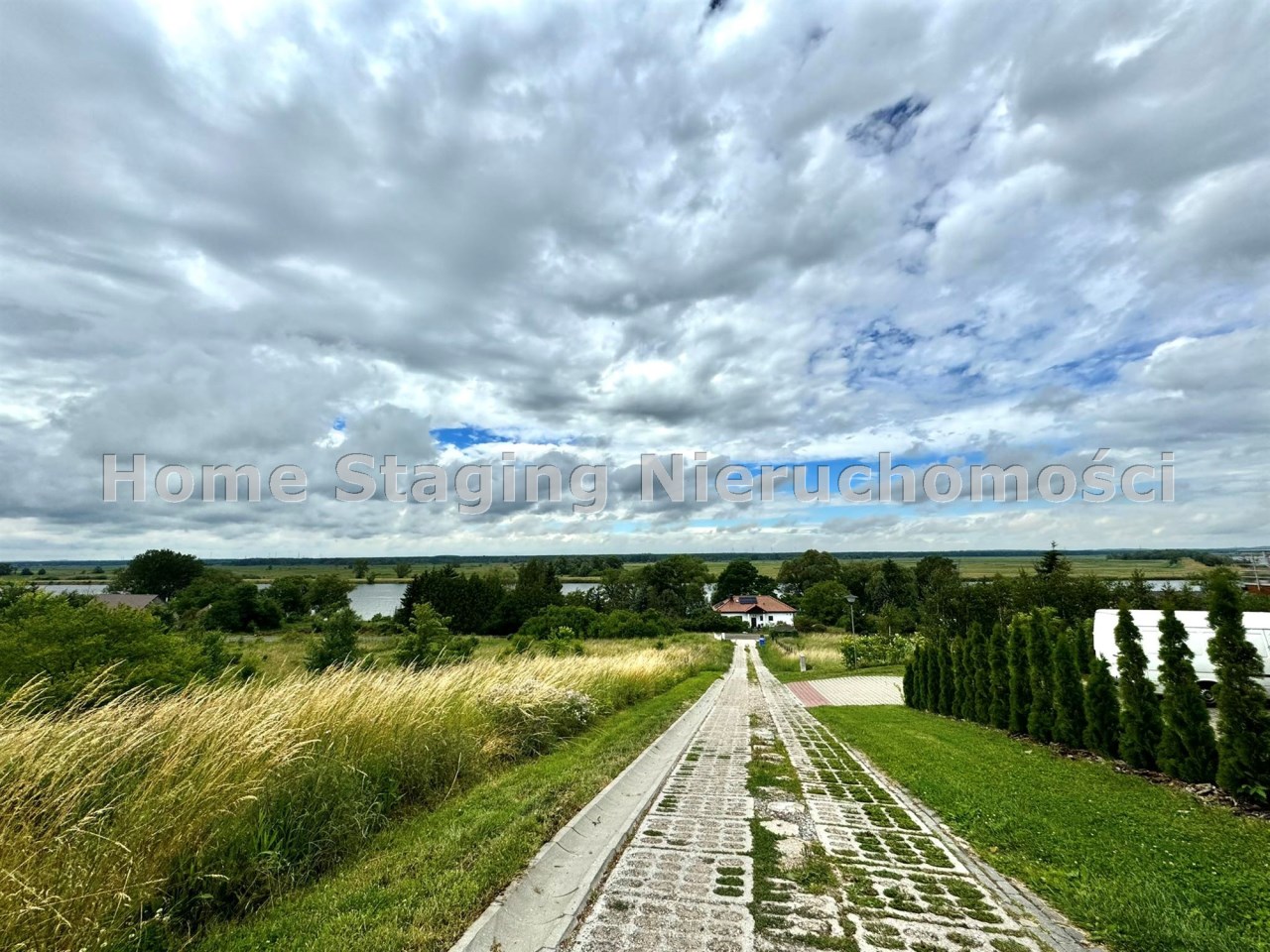 Działka położona na obrzeżach miejscowości, jest pochyła dzięki czemu na górnej części roztacza się niebywały widok na Odrę. Wjazd z drogi powiatowej asfaltowej.