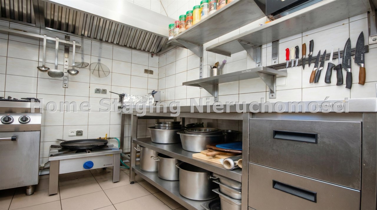 Na wyposażeniu znajduje się m.in. piec konwekcyjny marki Hendi, profesjonalny piec do pizzy używany tylko przez jeden sezon letni, umożliwiający przygotowanie ośmiu pizz jednocześnie, chłodziarki i zamrażarki, stoły robocze ze stali nierdzewnej, a także pełne zaplecze gastronomiczne. Lokal wyposażony jest w wentylację, klimatyzację, kurtynę powietrzną oraz nagłośnienie. Dodatkowym atutem są dwa miejsca parkingowe z tyłu budynku, przeznaczone dla dostawców.