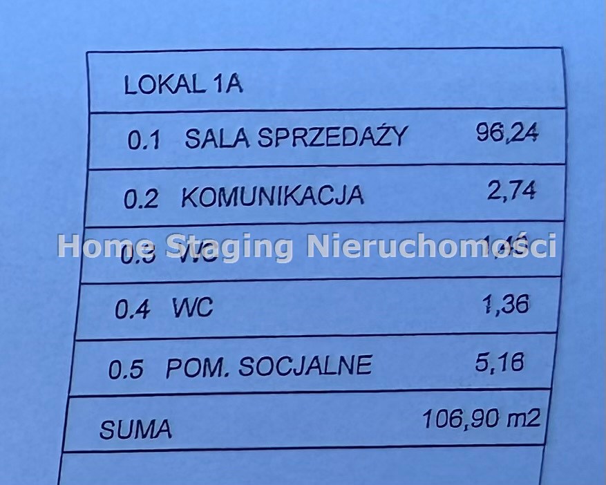 • otwarta przestrzeń główna / sala sprzedaży – 96,24 m²,
