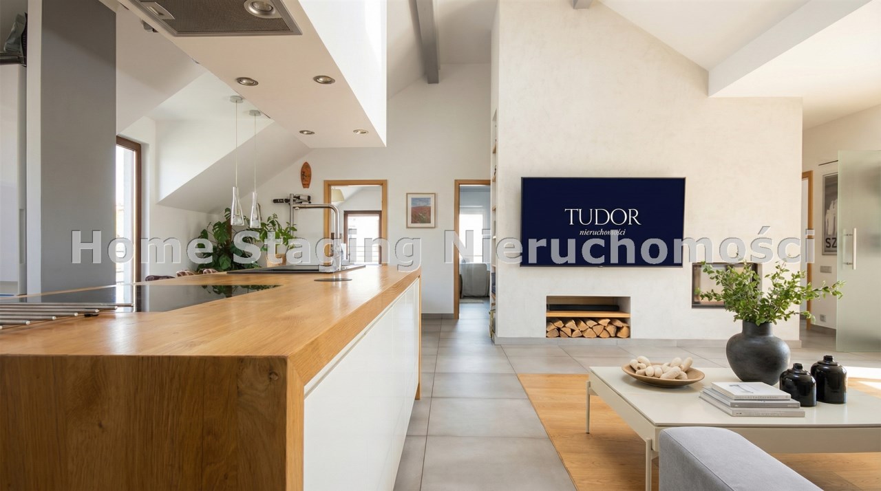 Lokal wykończony w bardzo wysokim standardzie. Wysokie sufity sprawiają wrażenie dużej przestronności a kominek w centralnej części dodaje uroku i ciepła domowego. W mieszkaniu wydzielona strefa Master - z własną łazienką i garderobą. Dodatkowo nad sypialnią zaprojektowaną schowek. W garażu wykonano pawlacz na przechowywanie sprzętu sportowego.