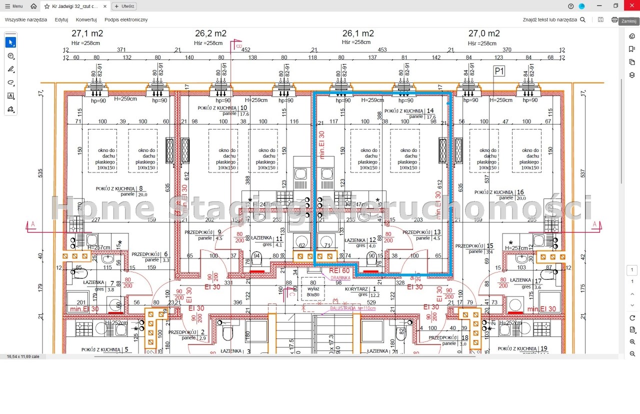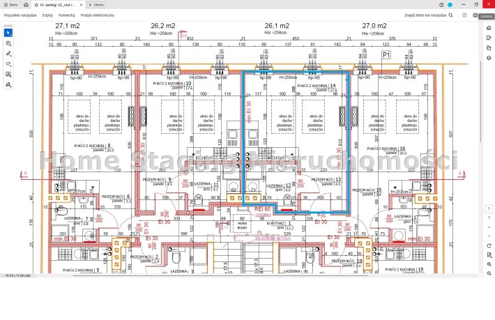 Mieszkanie o jednostronnej, zachodniej ekspozycji okien. Powierzchnia użytkowa wg. dokumentacji projektowej to 26,10 m2.