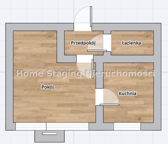 Układ: pokój, osobna kuchnia, łazienka, przedpokój.