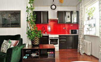 Pokój z aneksem kuchennym.