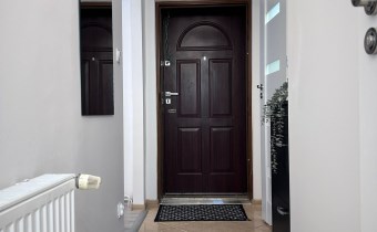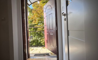 Mieszkanie jest zabezpieczone podwójnymi drzwiami wejściowymi.