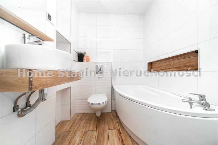 Na podłodze panele, nowe okna PCV z roletami. Gładzone ściany. Kuchnia w zabudowie z przedłużonym blatem pod oknem wyposażona w lodówkę, zamrażarkę, piekarnik oraz płytę indukcyjną. Łazienka z wanną w płytkach. Duży, widny i ustawny salon. Przestronna sypialnia pełniąca w tej chwili pokój dziecka.