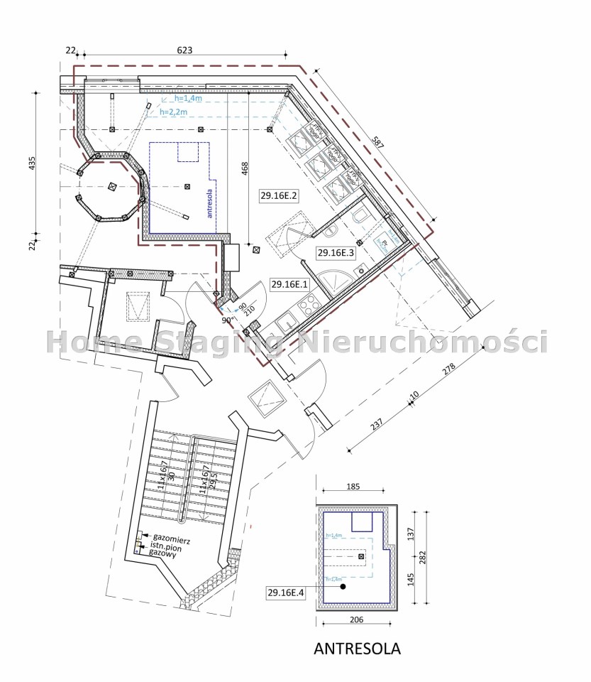 - antresola 0,91 m2.