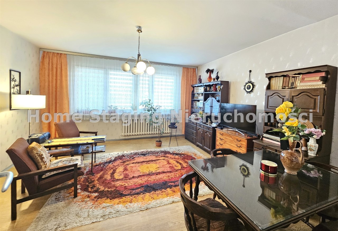 Mieszkanie o powierzchni 47,65 m2. Składa się z przestronnego salonu, sypialni, oddzielnej kuchni z oknem, łazienki z wanną i WC oraz korytarza. Ogrzewanie i ciepła woda z sieci miejskiej. Mieszkanie ciepłe. Okna wystawione na dwie strony świata. Do mieszkania przynależy piwnica. Czynsz zawiera zaliczki na ogrzewanie, ciepłą i zimną wodę. fundusz remontowy oraz śmieci. Pod budynkiem dostępne parkingi dla mieszkanców.