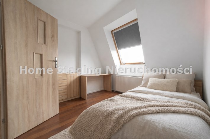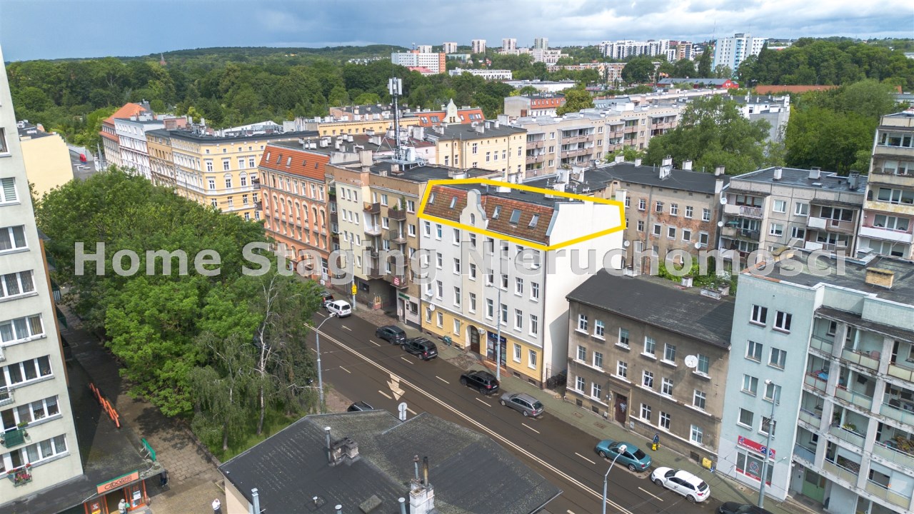 Nieinwazyjne skosy, prawidłowo wykonana adaptacja poddasza w postaci izolacji dachu. W kamienicy wymieniony dach, piony wodno-kanalizacyjne.