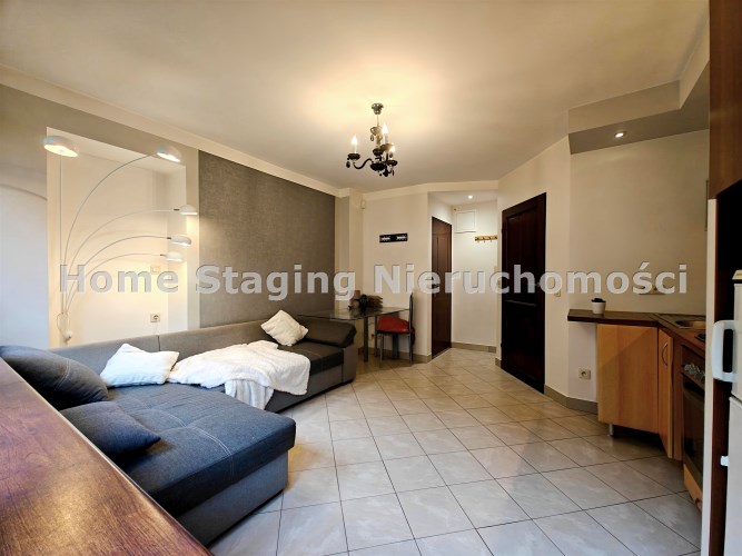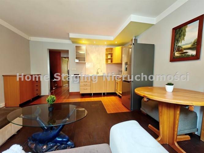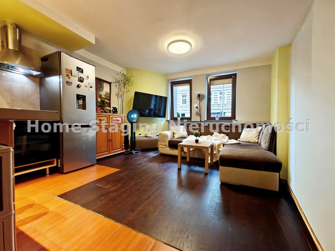 Lokal jest dwustronny (wschód–zachód) i został podzielony na dwa niezależne mieszkania: 2-pokojowe (ok. 40 m²) oraz studio (ok. 20 m²). Istnieje możliwość powrotu do układu pierwotnego lub wykonania osobnego wejścia – idealne rozwiązanie dla kancelarii, biura lub gabinetu. Bardzo łatwym sposobem można przewrócić do stanu pierwotnego (w zależności od zapotrzebowania kupującego).