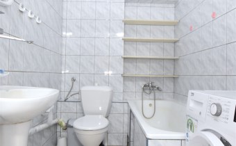 Wyposażenie łazienki WC, wanna zabudowana, umywalka, pralka, lustro