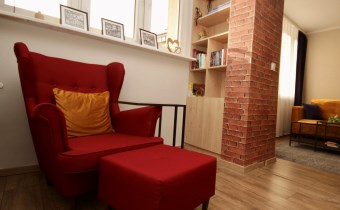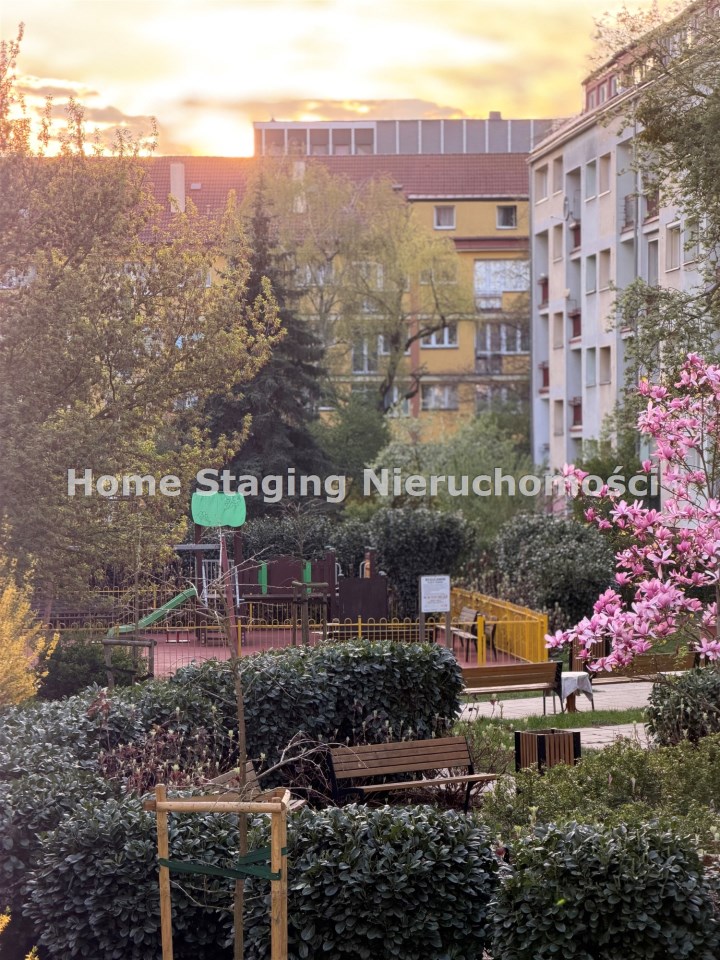 Mieszkanie znajduje się na pierwszym piętrze. Jest jasne, słoneczne, z pięknym popołudniowym i zachodzącym światłem wpadającym do wnętrza. Okna wychodzą na zielone, zamknięte podwórko, co zapewnia ciszę i prywatność.