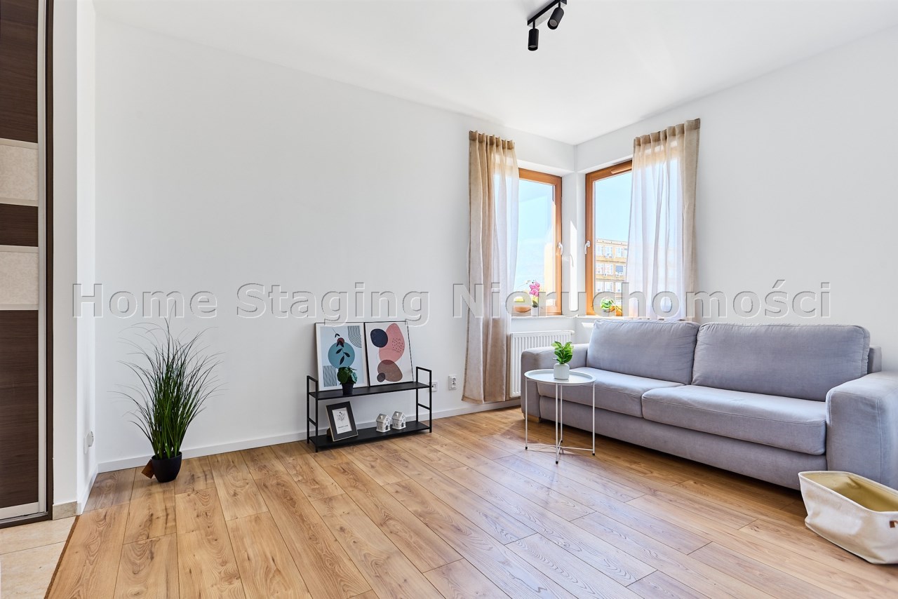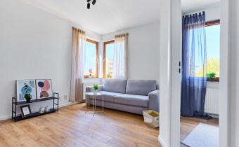 Mieszkanie znajduje się na pierwszym piętrze w niskim, kameralnym budynku z windą. Wyróżnia się funkcjonalnym układem i doskonałą lokalizacją.