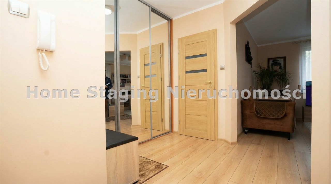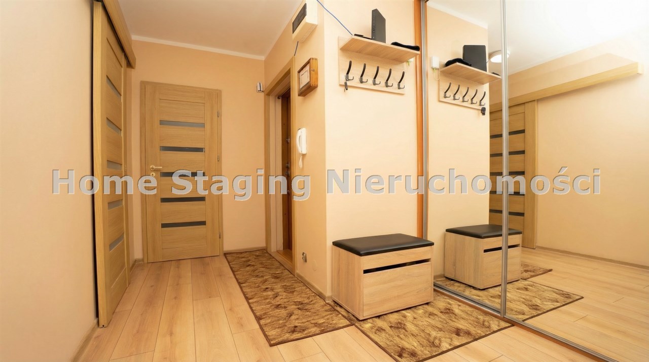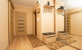 przestronnego przedpokoju z dużą szafą.