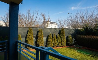 przestronnego salonu z wyjściem na balkon/taras i bezpośrednim zejściem do ogródka,