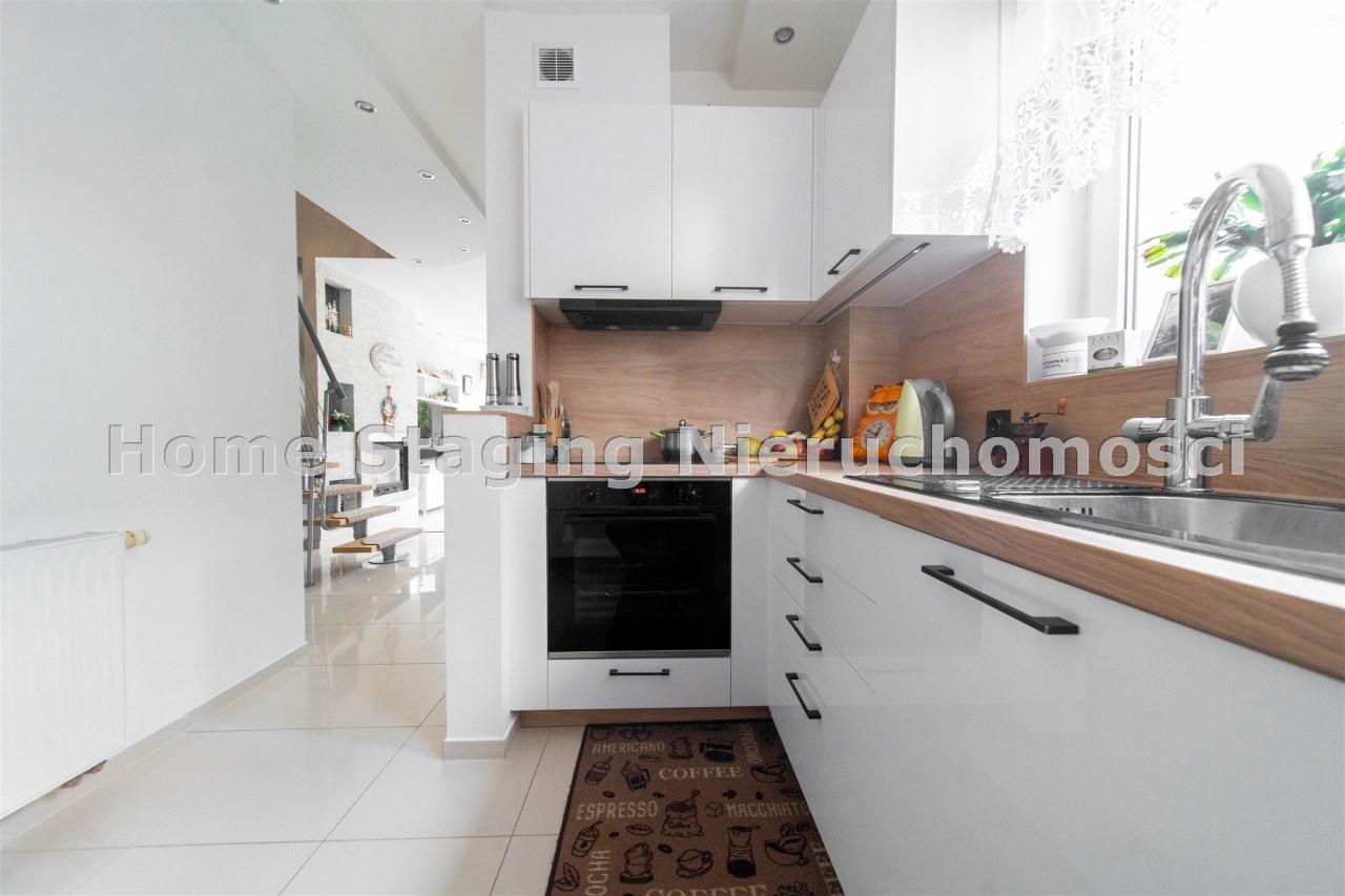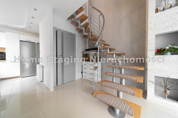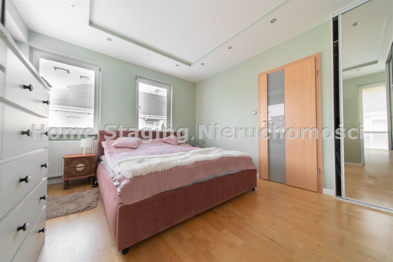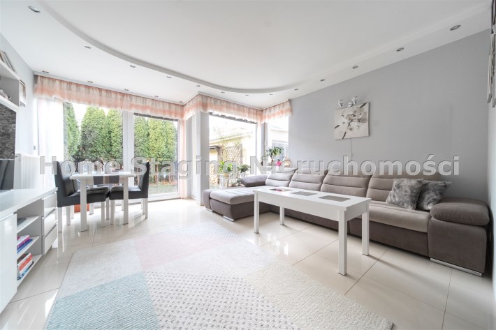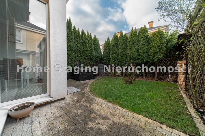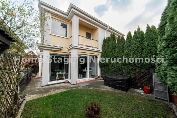 Na sprzedaż dwupoziomowe mieszkanie z ogródkiem w czterorodzinnym szeregowcu na zamkniętym strzeżonym osiedlu Bursztynowe w Warzymicach.