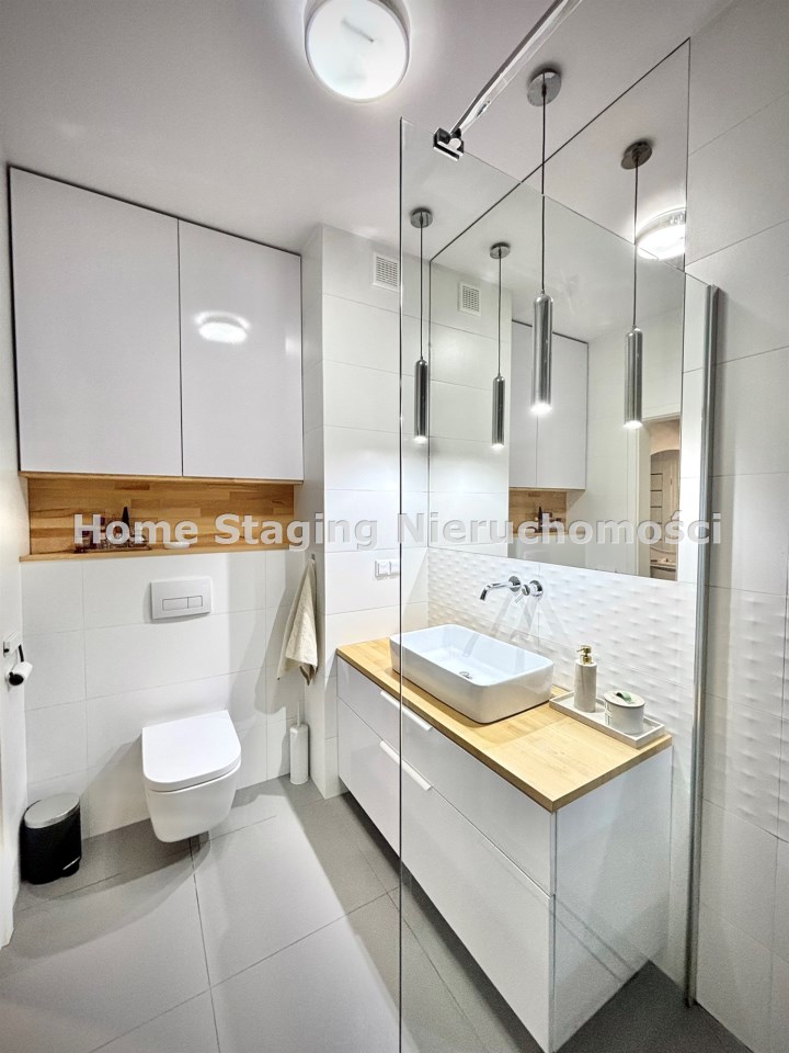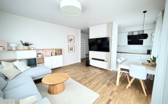 Mieszkanie w pełni zaprojektowane przez architekta wnętrz, z naciskiem na funkcjonalność i ergonomię. Wnętrze mieszkania jest niezwykle jasne, a taras zlokalizowany od zachodu jest perfekcyjnym miejscem na spędzanie letnich wieczorów na świeżym powietrzu.