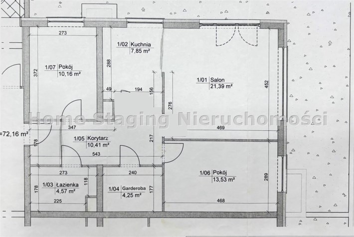 • powierzchnia użytkowa: 72,16 m²,