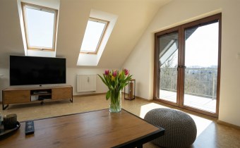 -salon ( 26,77m2 , użytkowej 17.30m2 z) z wyjściem na taras ( 9,85)