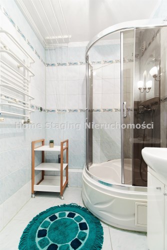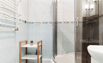 - łazienka z prysznicem + osobne WC (wyposażona w pralkę)