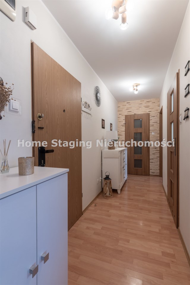 Mieszkanie położone na trzecim piętrze budynku, o północno zachodniej ekspozycji okien. Z balkonu rozpościera się piękny widok na zachodnią część miasta. Mieszkanie w bardzo dobrym standardzie, na podłodze panele, ściany gładzone, malowane. W łazience, z wanną i wc, ładna, jasna glazura i terakota. Pokoje w całości umeblowane i wyposażone. Kuchnia umeblowana i wyposażona w sprzęt AGD - płyta elektryczna, piekarnik elektryczny, lodówka, okap, kuchenka mikrofalowa. W łazience znajduje się pralka. Dodatkowo w mieszkaniu znajduje się duża garderoba. Ogrzewanie i ciepła woda z SEC - osobna umowa.