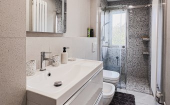 Mieszkanie znajduje się na pierwszym piętrze, a jego okna wychodzą zarówno na ulicę, jak i na podwórko za budynkiem. Mieszkanie przestronne i niezwykle ciepłe.