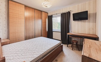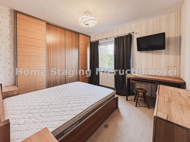 • w sypialni łóżko 160x200cm, bardzo duża szafa z drzwiami przesuwnymi w zabudowie oraz biurko i komoda