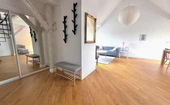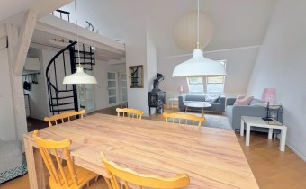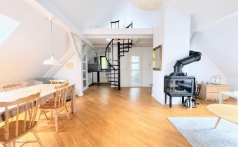 Lokal oferuje 52 m² powierzchni po podłodze, co przekłada się na funkcjonalną przestrzeń mieszkalną z charakterystycznymi skosami, nadającymi wnętrzu niepowtarzalny klimat. Dodatkowym atutem jest antresola o powierzchni ok. 10 m², idealna jako sypialnia, strefa relaksu lub miejsce do pracy.