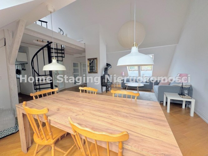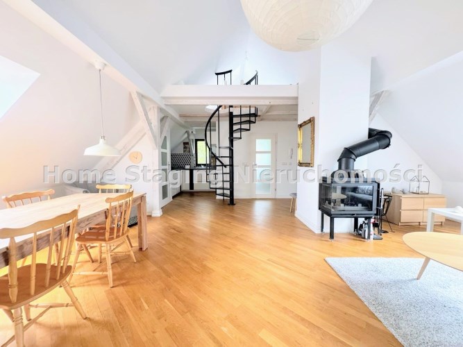 Na wynajem wyjątkowe, klimatyczne mieszkanie powstałe w wyniku adaptacji strychu, zlokalizowane przy ul. Niny Rydzewskiej – w jednej z najbardziej zielonych części miasta.