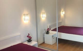 Mieszkanie zostało zaprojektowane z dbałością o każdy detal i wykończone materiałami wysokiej jakości. Składa się z przytulnej sypialni z dużym łóżkiem (160x200), pojemną szafą oraz stolikami nocnymi, a także przestronnego salonu połączonego z funkcjonalnym aneksem kuchennym.
