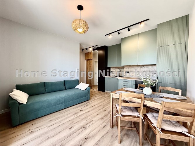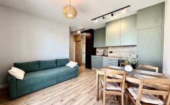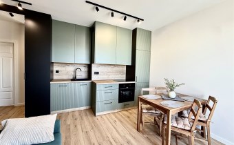 Wszystkie sprzęty oraz meble są nowe - mieszkanie nigdy nie było zamieszkane. Zostało ono zaprojektowane tak, aby było doskonałym miejscem do życia. Duża ilość szafek kuchennych i funkcjonalny układ daje komfort korzystania z kuchni bez kompromisów.