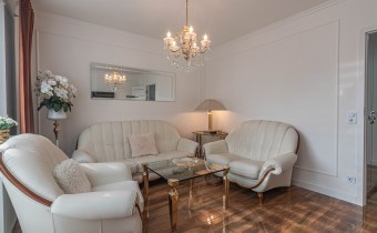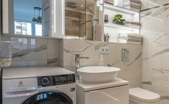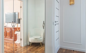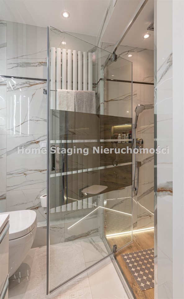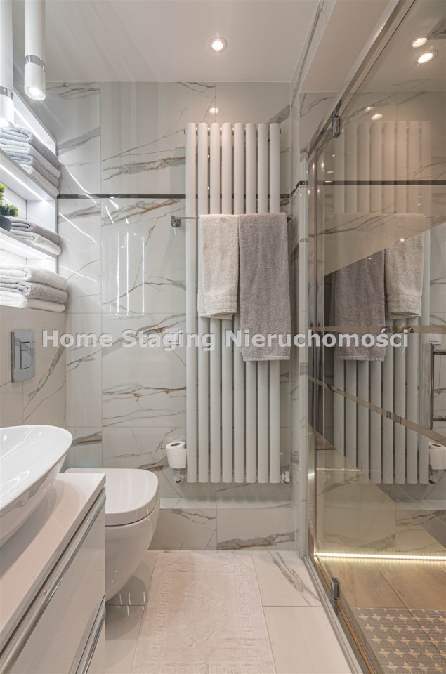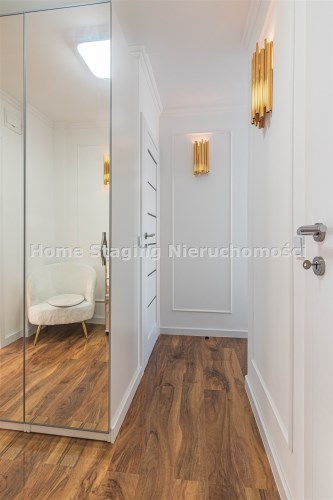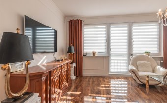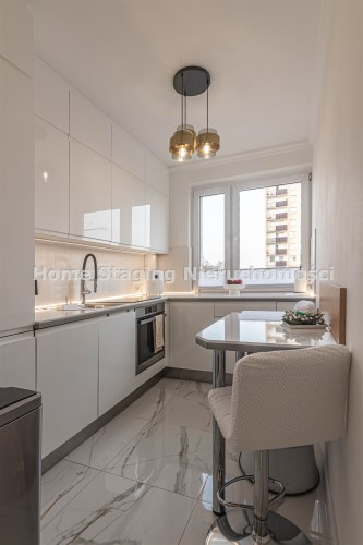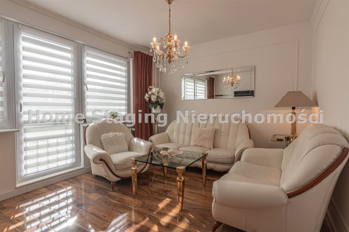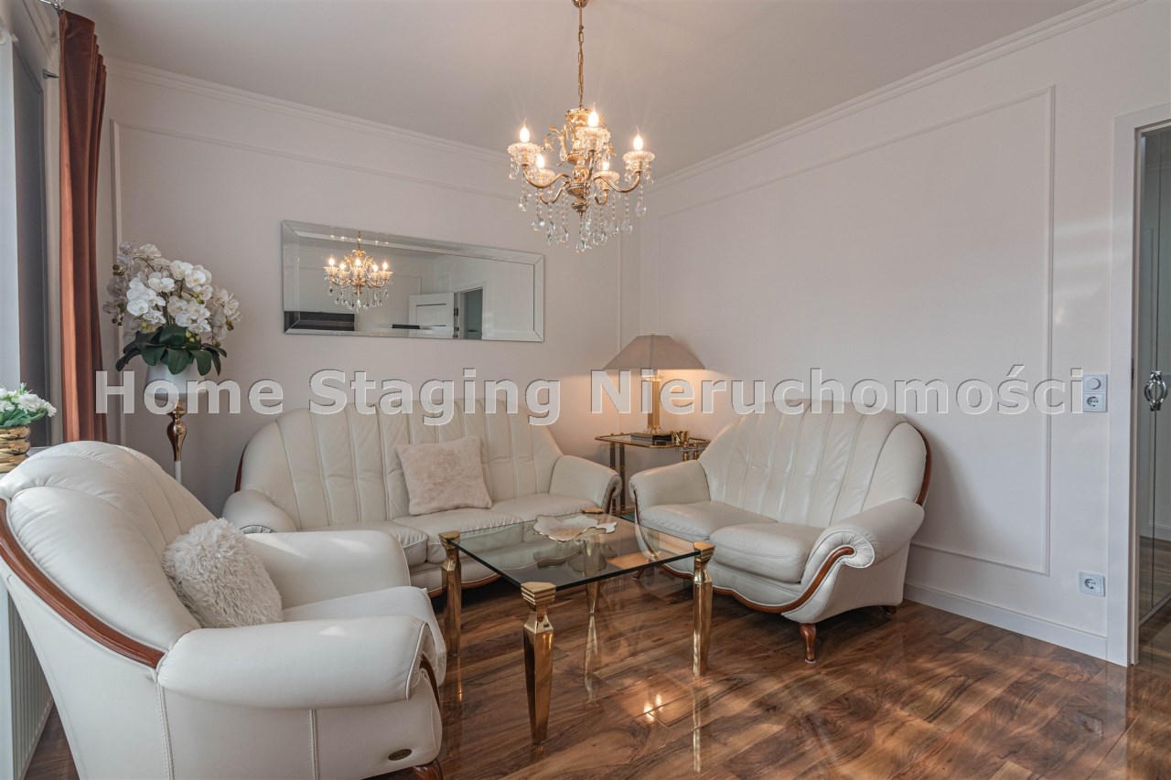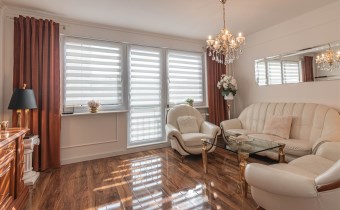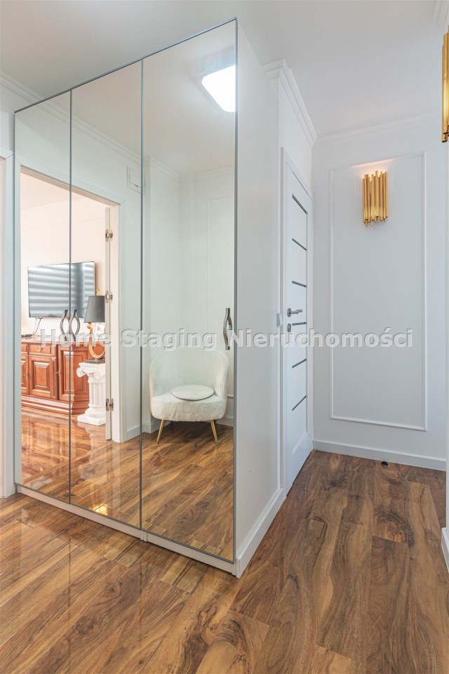 Mieszkanie kompletnie umeblowane i wyposażone; w dużym pokoju zestaw mebli skórzanych, komoda, odbiornik TV, w sypialni duże łóżko, szafa w zabudowie, odbiornik TV. Łazienka nowocześnie zaaranżowana z dużą kabiną prysznicową z krzesełkiem, wyposażona w pralkosuszarkę. W kuchni sprzęt AGD: lodówka z zamrażarką, płyta indukcyjna, piekarnik, okap, zmywarka. Dodatkowo zestaw sztućców, talerzy, garnków oraz innych urządzeń typu air-frayer, soda-strean, czajnik, itp. Mieszkanie wyposażone jest również w odkurzacz, suszarkę do ubrań, deskę do prasowania, żelazko, pościel oraz ręczniki.