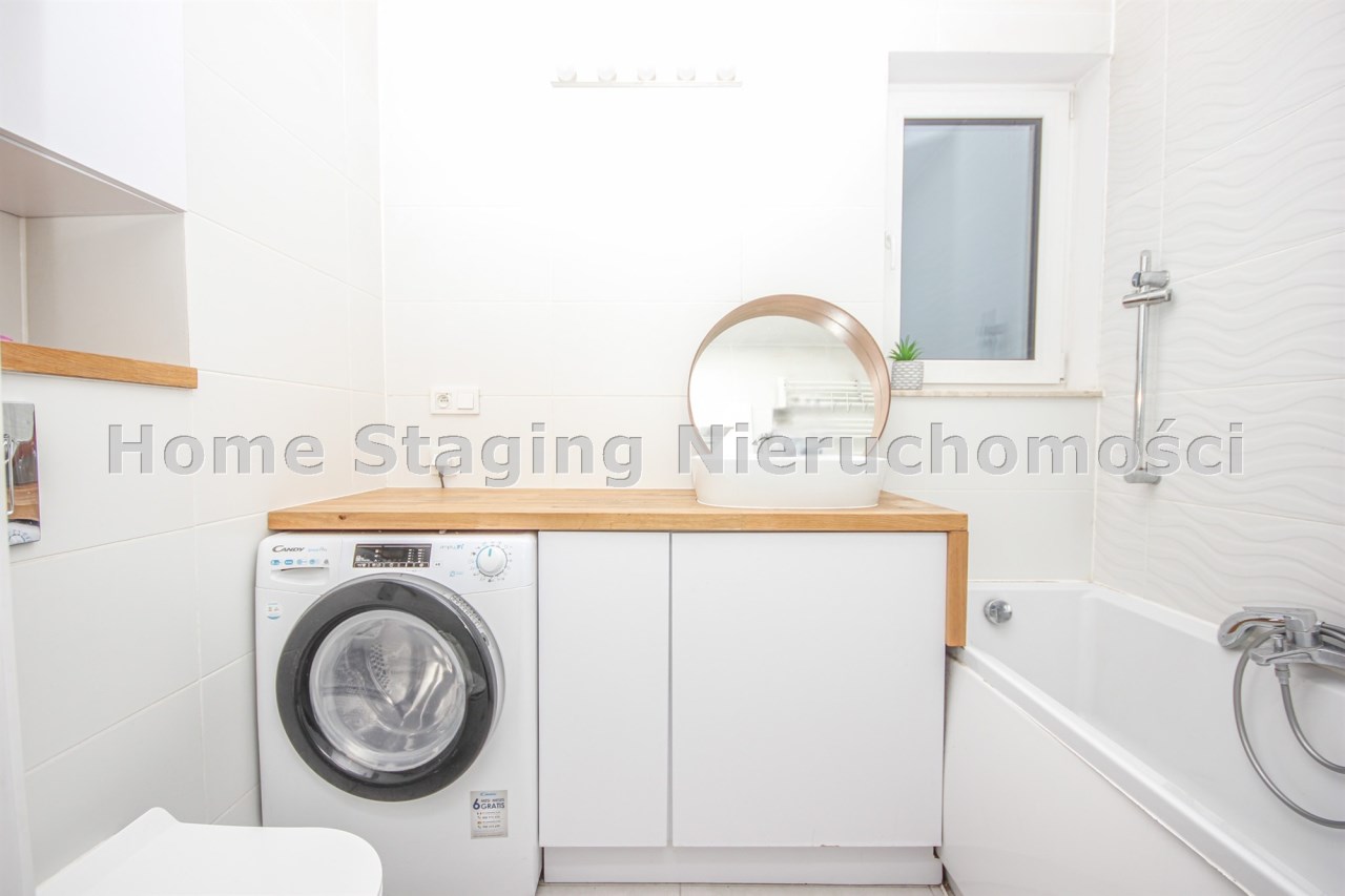 - łazienka z wanną i pralką,